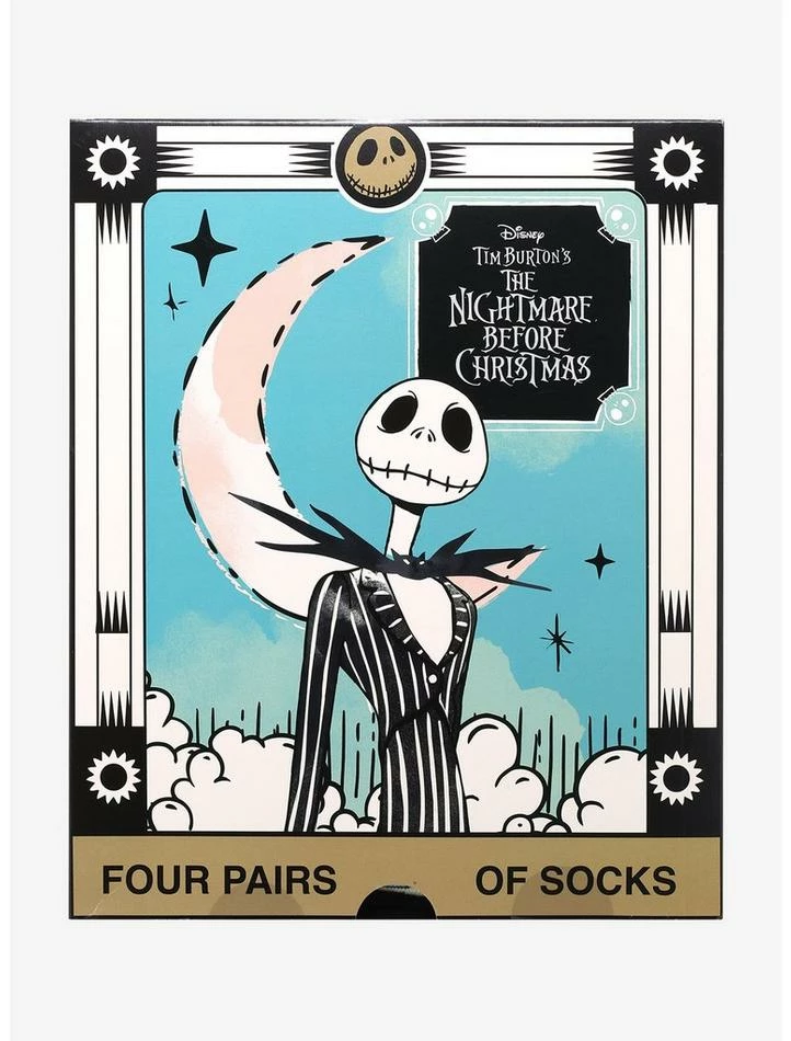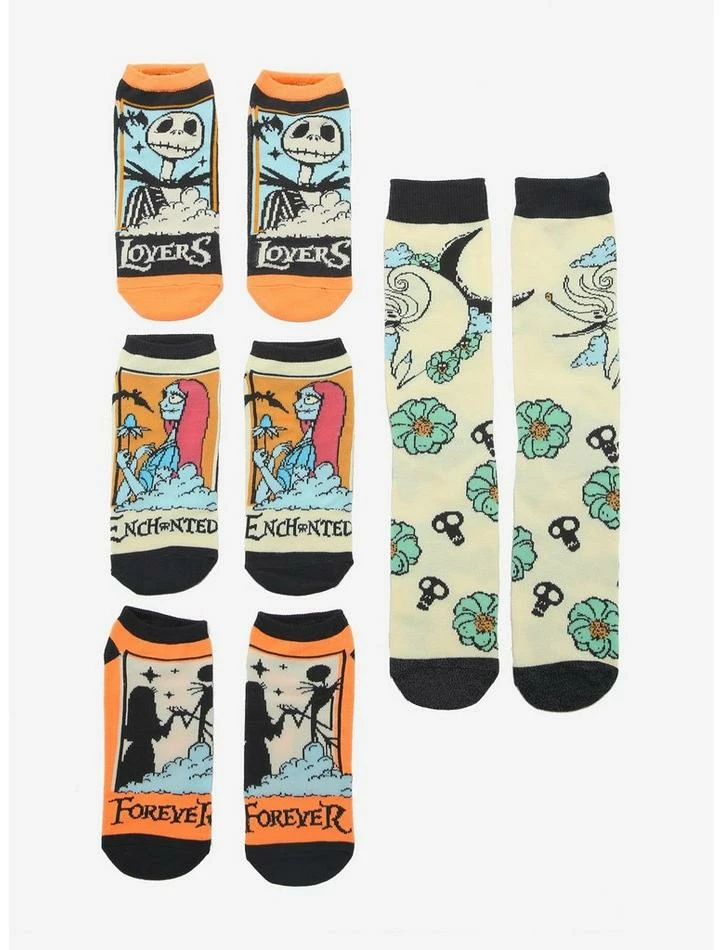 It’s time… for new The Nightmare Before Christmas socks! This four pack of socks is inspired by tarot cards and includes one pair of men’s crew socks and three pairs of women’s ankle socks.