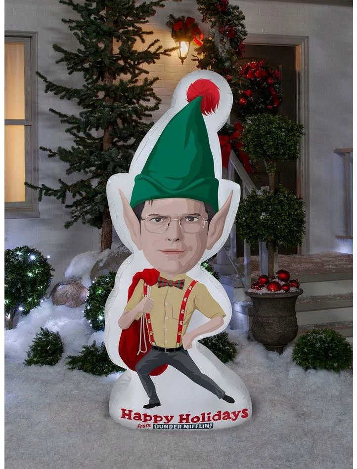 Deck the yard with an Airblown Inflatable Dwight from The Office! This hilarious holiday inflatable features a photorealistc image of Dwight dressed as an office elf. Perfect for fans of The Office, this Dwight inflatable makes an eye-catching addition to your Christmas decorations. Setup is super simple. Just plug it in, stake it down and watch the magic unfold. Includes everything needed for easy outdoor setup.