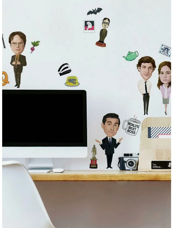 Stage your home office or work station with The Office characters including Michael Scott, Dwight Schrute, Jim Halpert and Pam. Wall decals are an easy and affordable way to decorate in minutes. Reposition or remove them effortlessly with no remaining sticky residue or damage to walls.ย