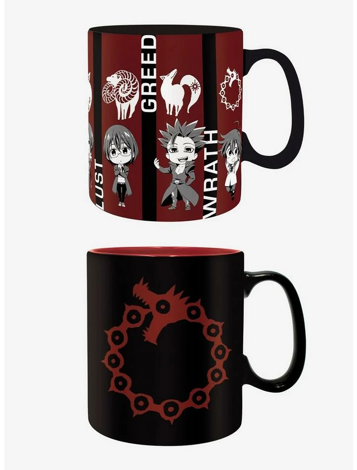 Officially licensed The Seven Deadly Sins mugs. Pack includes (1) Emblems Mug and (1) Chibi Sins Mug. Mugs are made of ceramic. Mugs hold 16 oz. each. Mugs are dishwasher and microwave safe.