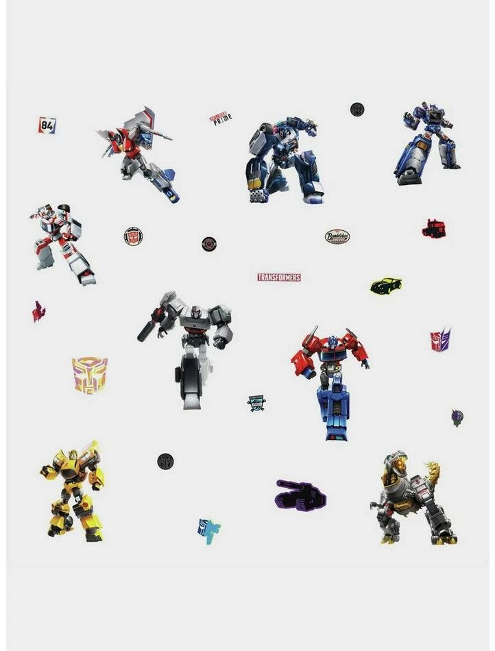 Decorate walls with Transformers All Time Favorites Peel and Stick Wall Decals by. Complete with 25 decals, this wall sticker set is a fun and creative way to transform any room in seconds. To apply, simply peel and stick decals to any smooth, flat surface. Remove, reposition and reuse as often as needed. Created with high quality vinyl that?s made to last, walls stay completely safe, and sticky residue is never left behind. It?s fast, fun and affordable wall decor at it?s best.