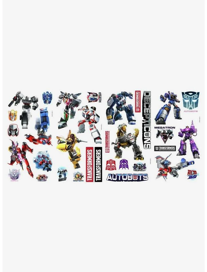 Power up and take your battles to the next level with these Transformers Peel and Stick Wall Decals. Create dynamic action-packed scenes on your walls or furniture with both Autobots and Decepticons included in this officially licensed set by Hasbro. These wall decals are removable and repositionable with no damage to the wall and no sticky residue.
