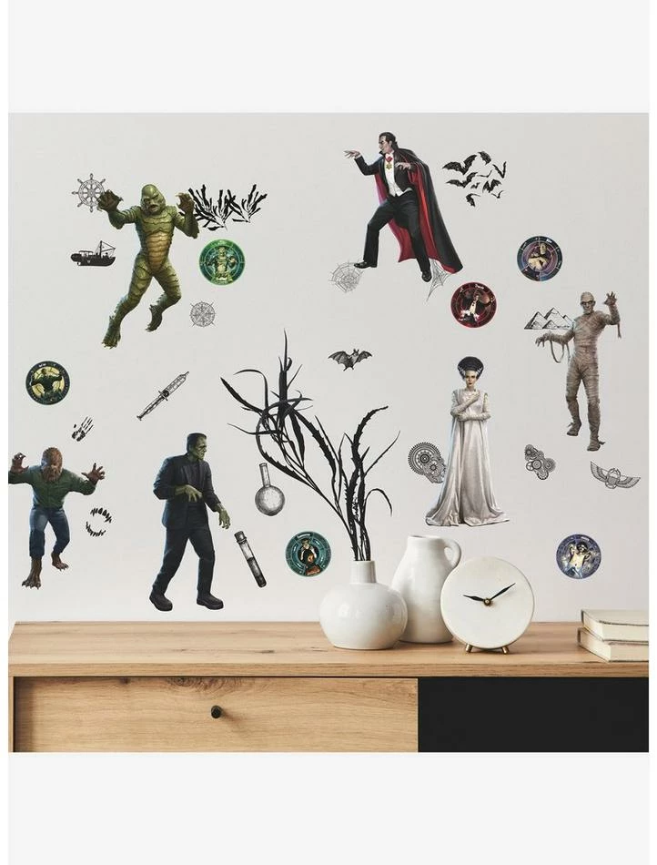 If you are a true fan of classic monsters, these officially-licensed, Universal Monsters Peel and Stick Wall Decal are the ultimate wall decor. Of course, these decals depict all the greatest monsters and are perfect for Halloween decoration, but only true fans will want this on their walls all year-long.ย