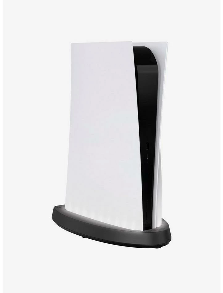Add a touch of style to your gaming setup with this stunning LED stand for PlayStation 5. The simple USB-powered dock illuminates your console with your choice of one of seven colors or on a multi-color constant loop through all the spectrum of lights.The color and brightness can be adjusted with the touch of a button and the lights can also be turned on or off without having to disconnect the console. The base design ensures you retain access to all ports and vents whilst offering an extra level of sturdiness to hold your console in place. PS5 not included. Includes LED stand and USB cable. Compatible with all PS5 consoles. Features:7 color options: green, white, blue, purple, pink, red, orange or multi-color Built-in controls: on/off, color setting, brightness, pulsing glow or solid light USB powered with 20 cm cable to plug directly into your console.