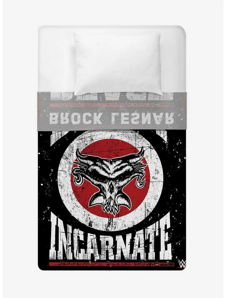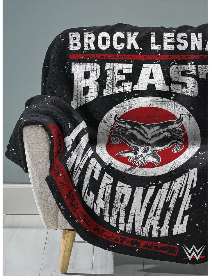 This WWE Brock Lesnar American Nightmare throw blanket is 60″ x 80″, made with super-soft Raschel knit with a soft and luxurious feel. Made with 100% polyester, it is machine washable, officially licensed by the WWE. Great for chilling on the couch while watching WWE, picnics, camping and chilling. The size can allow this throw to be used as a twin size bedspread.WWE Brock Lesnar Beast Incarnate 60″ x 80″ Raschel Plush Blanket Product Specs: BROCK LESNAR SUPER SOFT THROW Sleep Squad WWE blankets features a dynamic graphic design with authentic logos from the WWE archives.DETAILS 60″ x 80″. Super Soft Plush fleece feel. WASHER AND DRYER SAFE: Machine wash cold separately using delicate cycle and mild detergent. Do not bleach. Machine dry separately on gentle cycle. Promptly remove. Do not iron. These wash instructions will help your blanket keep that soft, plush feel you want. OFFICIALLY LICENSED This is officially licensed by the WWE. MAKES A GREAT GIFT The perfect present for any fan, young or old, of WWE. A great addition to any Brock Lesnar fan’s collection.