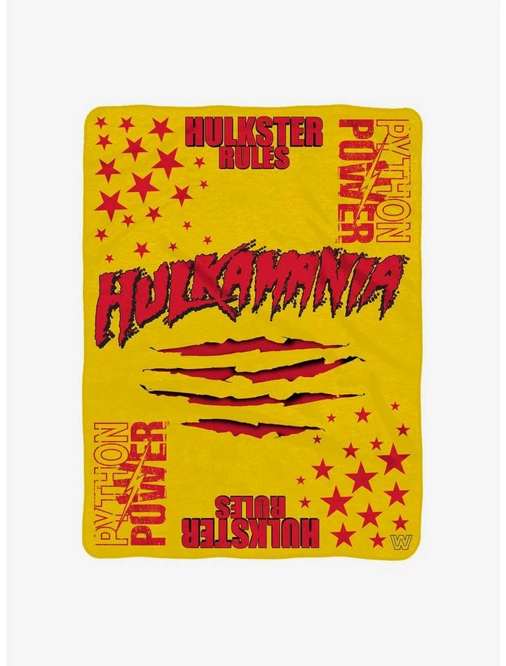 This WWE Hulk Hogan throw blanket is 60″ x 80, made with super-soft Rachel knit with a soft and luxurious feel. Made with 100% polyester, it is machine washable, officially licensed by the WWE. Great for chilling on the couch while watching WWE, picnics, camping and chilling.ย The size can allow this throw to be used as a twin size bedspread.ย